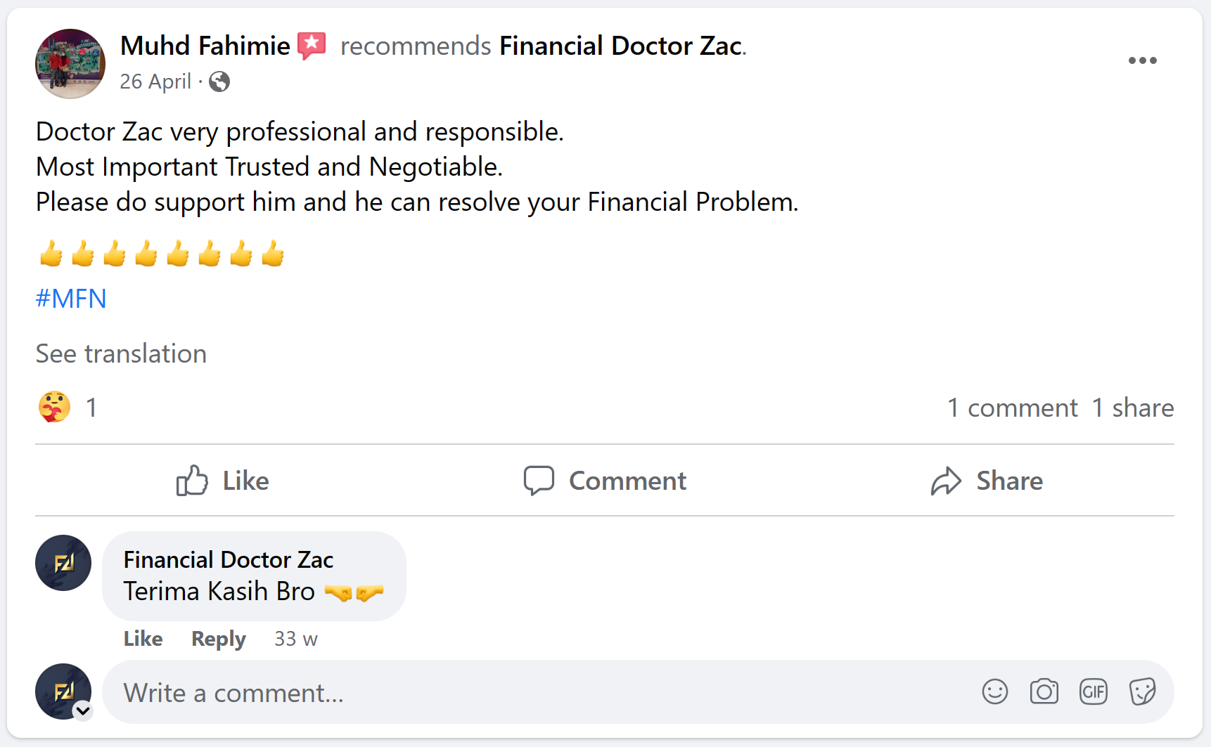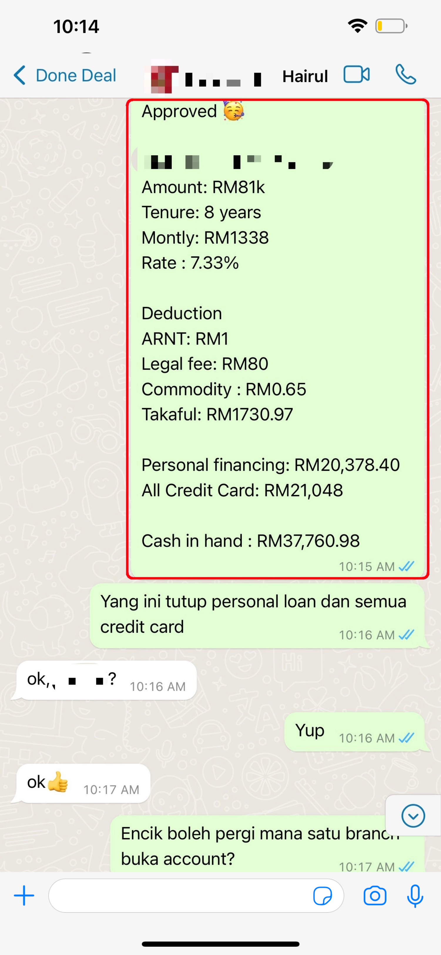 Penyatuan Hutang telah bebaskan diri daripada AKPK dengan kelulusan Personal Loan RM200k. Cash flow positif dalam tangan RM140k.