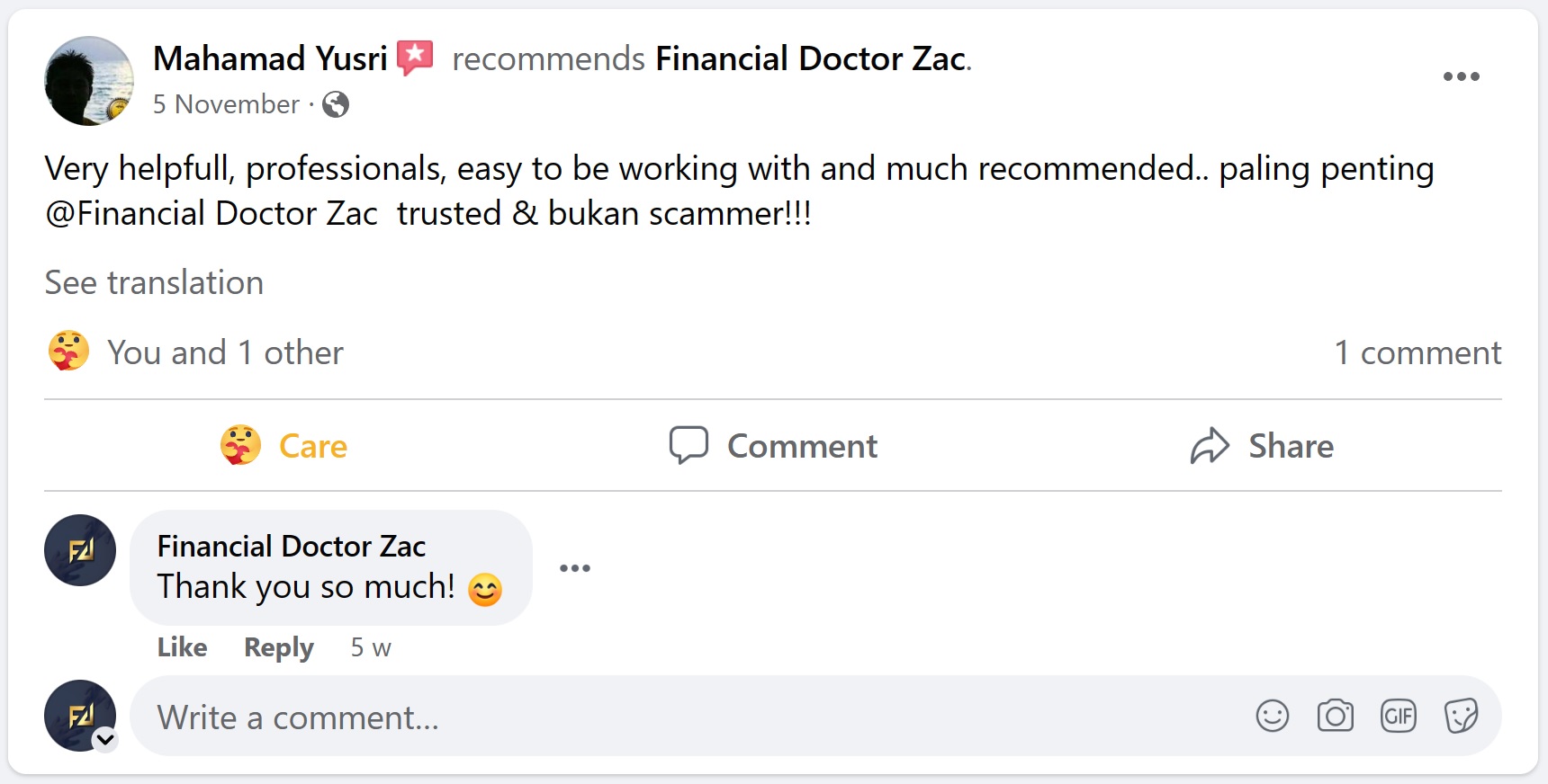 Awal bebaskan diri daripada AKPK dan dapat kelulusan Personal Loan RM300k untuk kegunaan investment.