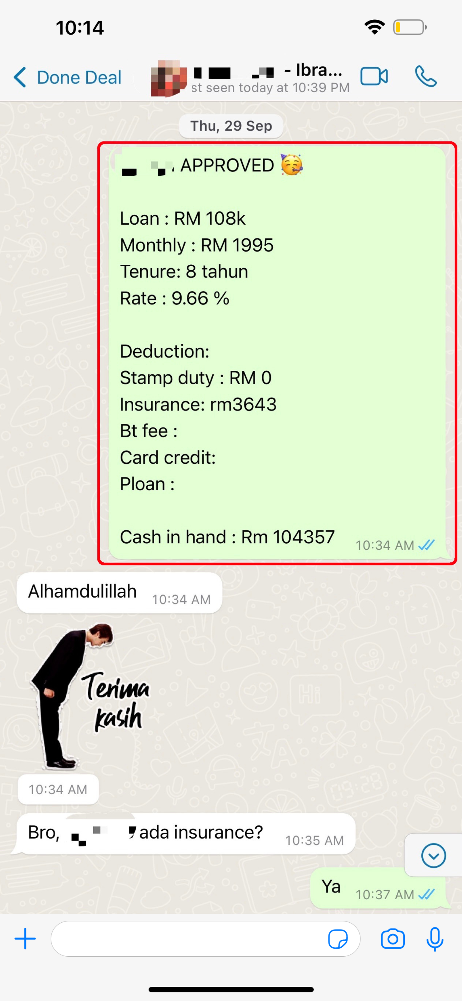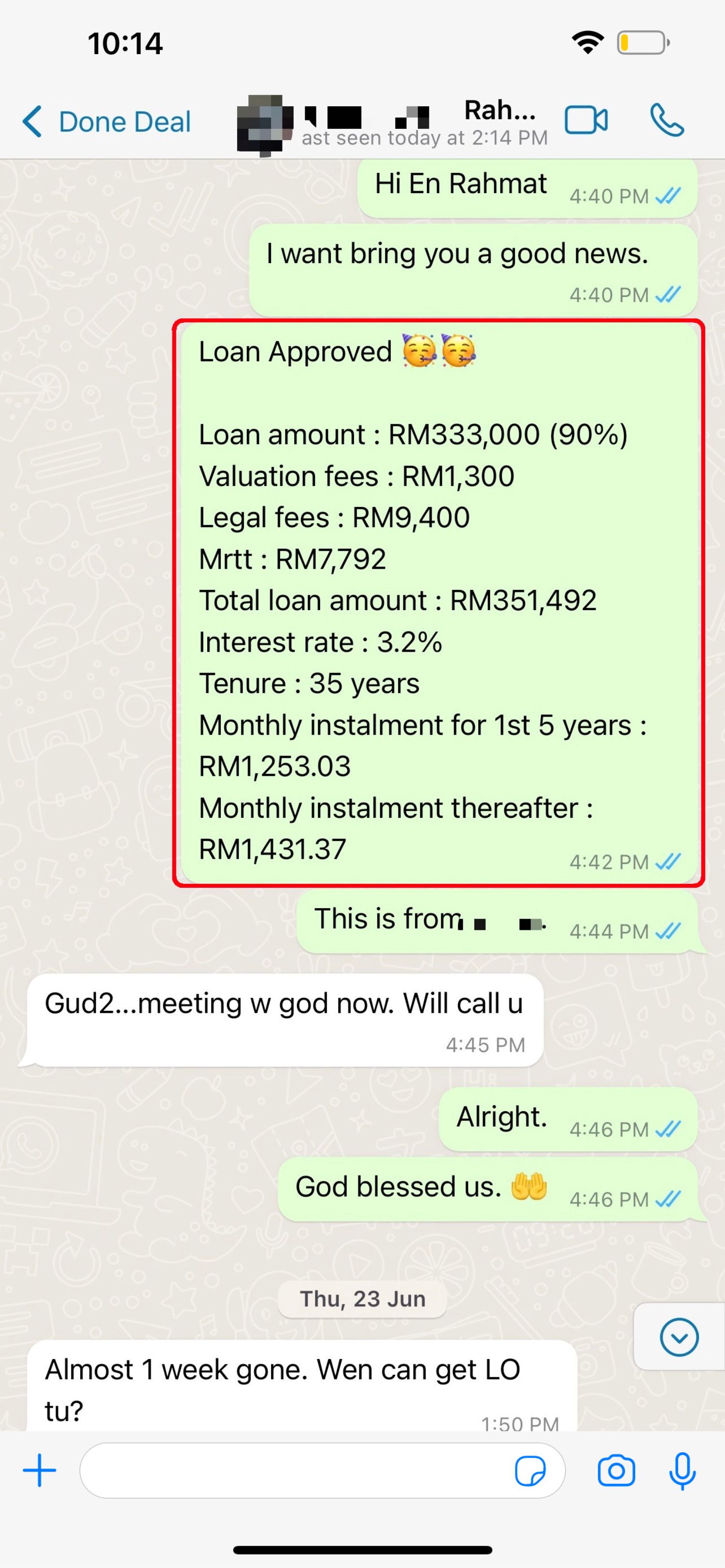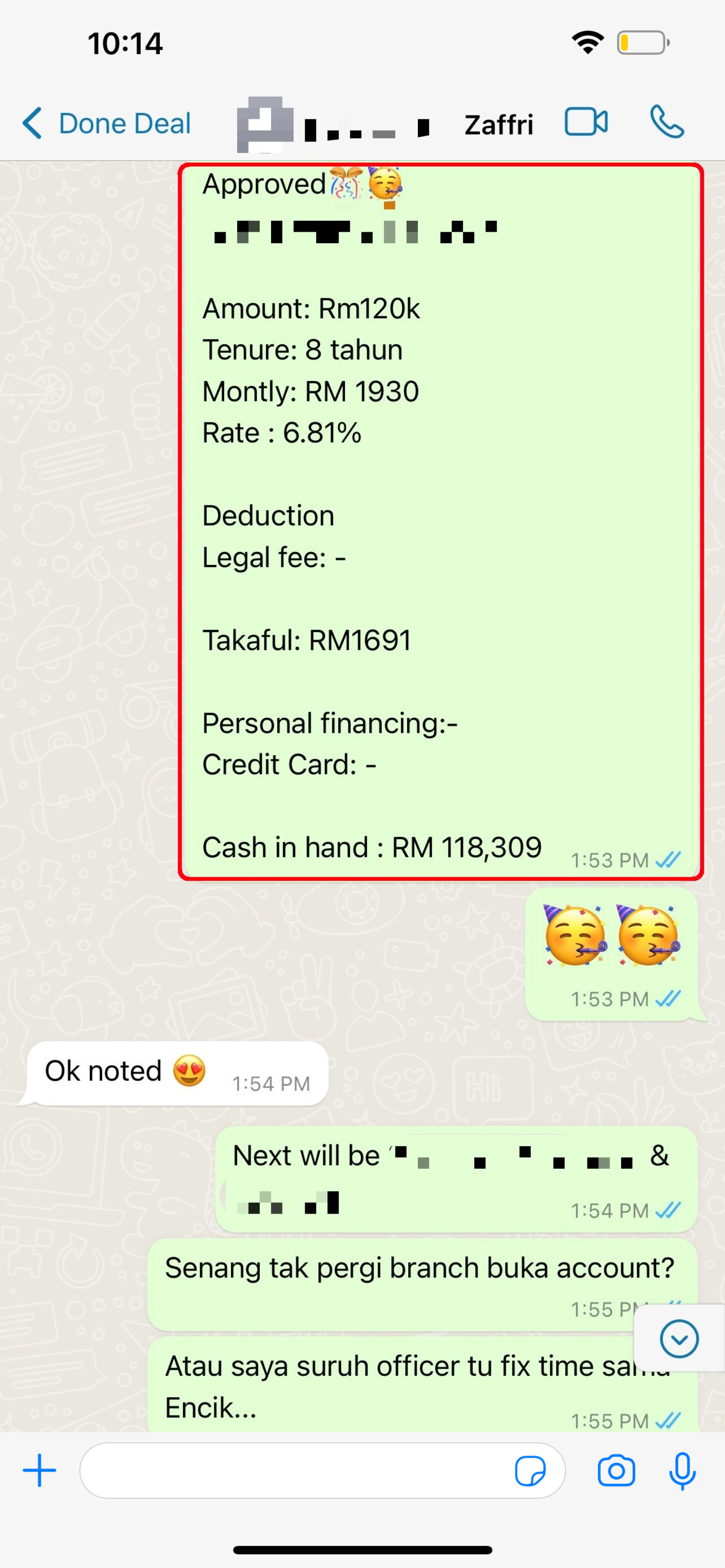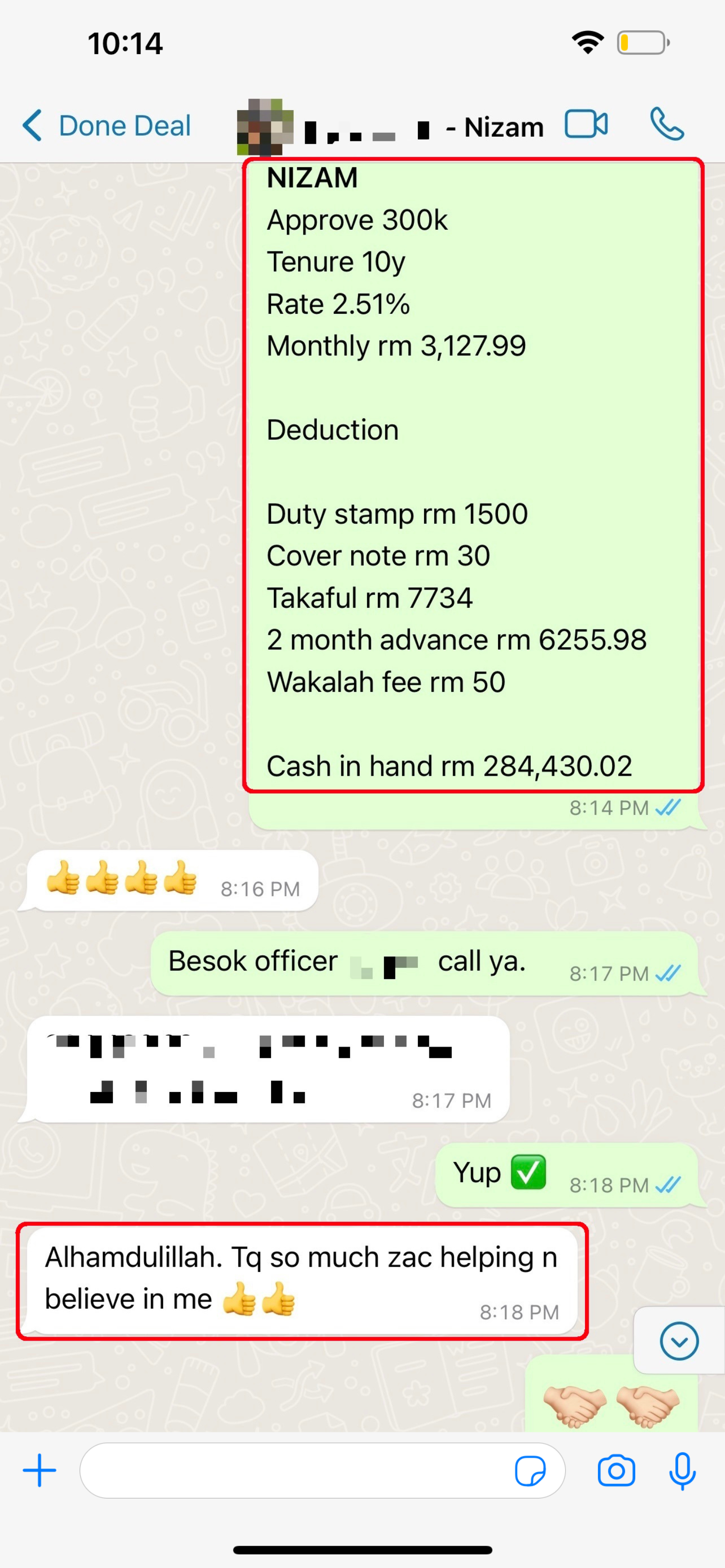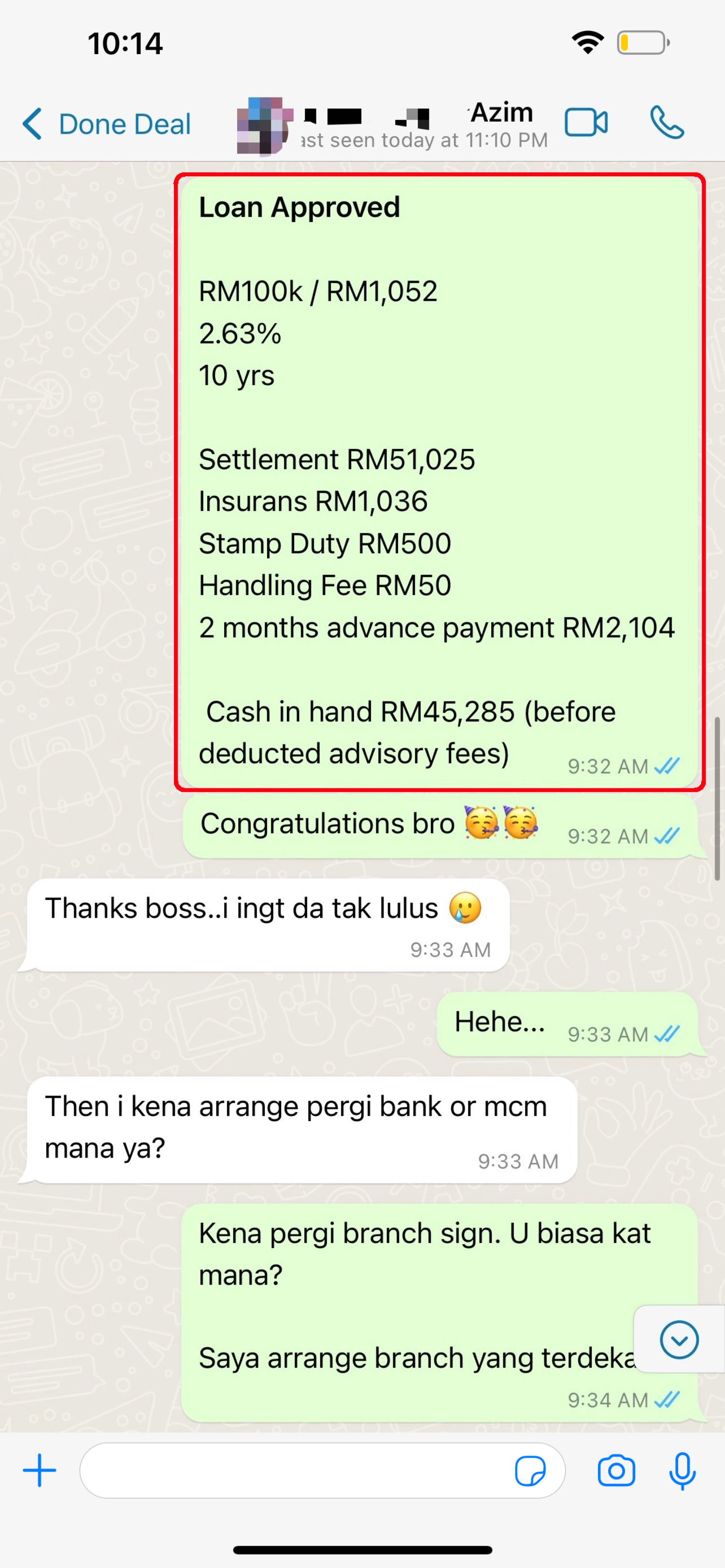 Langsaikan AKPK & Legal Status dengan kelulusan Refinancing House Loan RM849k + Personal Loan RM100k. Cash flow bertambah beratus-ratus ribu dan komitmen bulanan kekal sama seperti dulu.